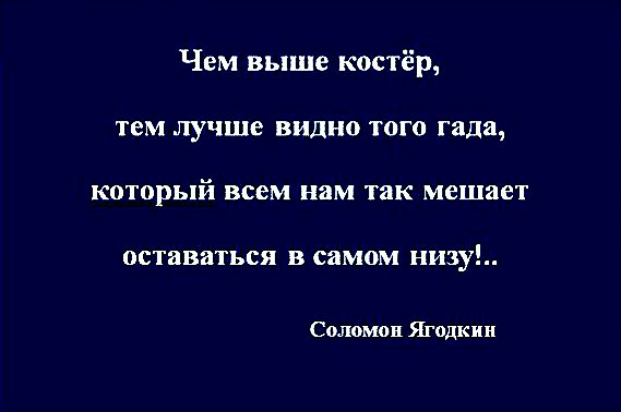 Стандартная отговорка тех, кно ничего не в состоянии сделать сам: "Нужно убрать с нашего пути тех, кто нам мешает счастливо жить,и как только мы их устраним, наше счастье само-собой придет к нам в руки"