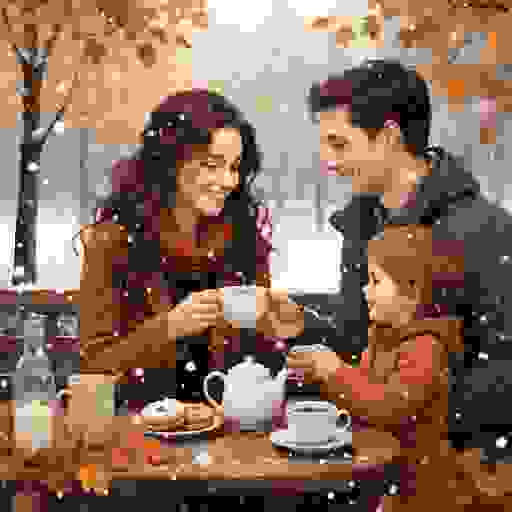 Осень снежок на курточке гостит осень встречает с чаем женщина домашних веселит осень печенье называет раем.