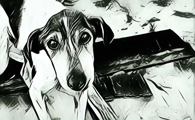 Облезлая худая собачка.