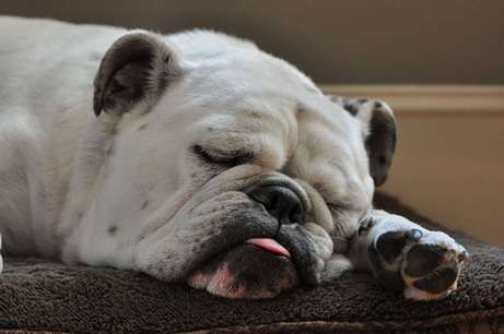 Брета, бульдожка, со мной рядом спит.