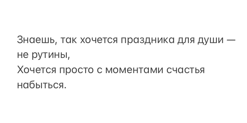 Знаешь, так хочется праздника для души — не рутины,
