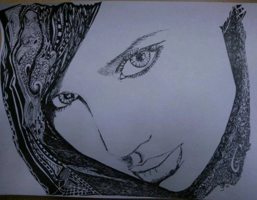 Укутав серой шалью плечи