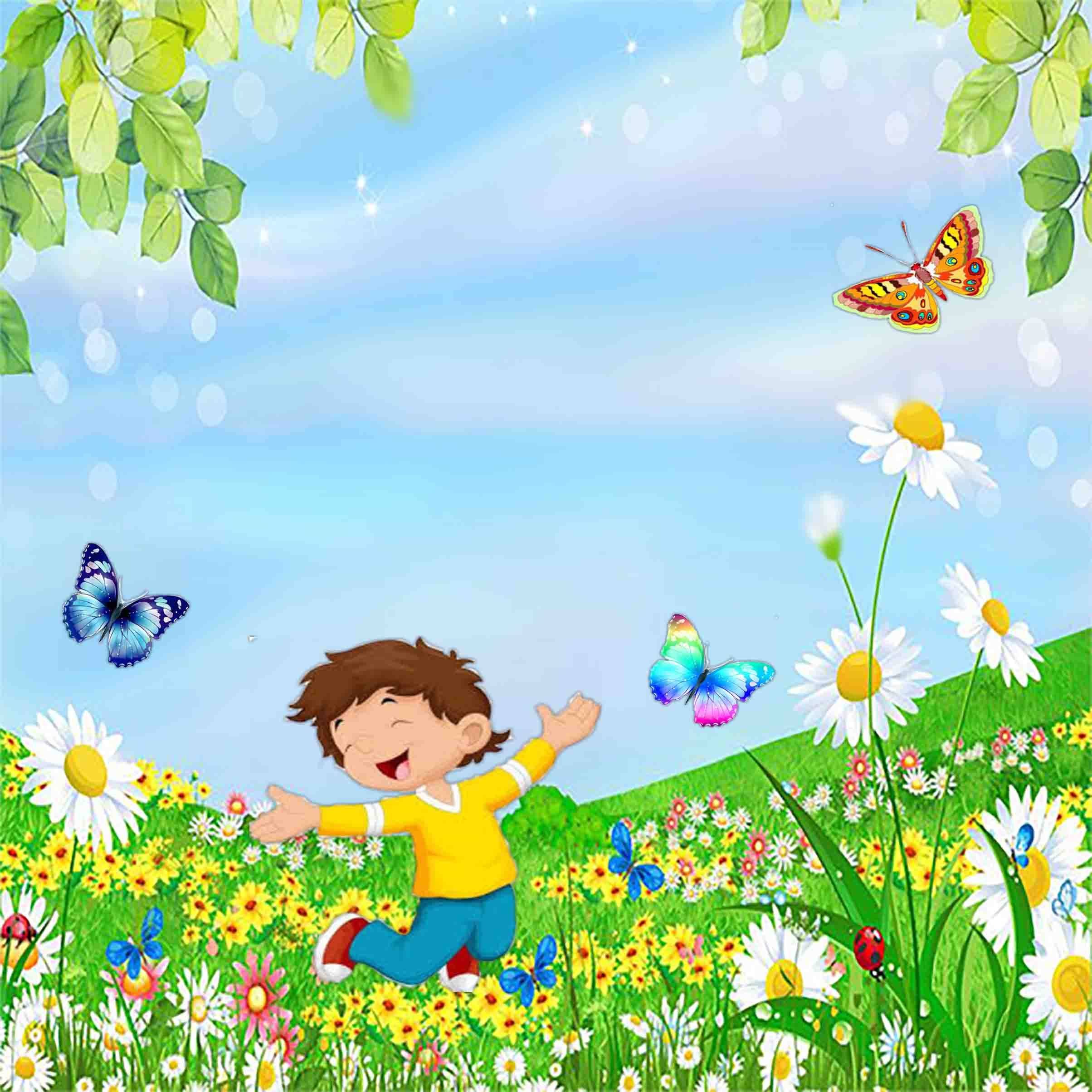 На цветной полянке озорной мальчишка
