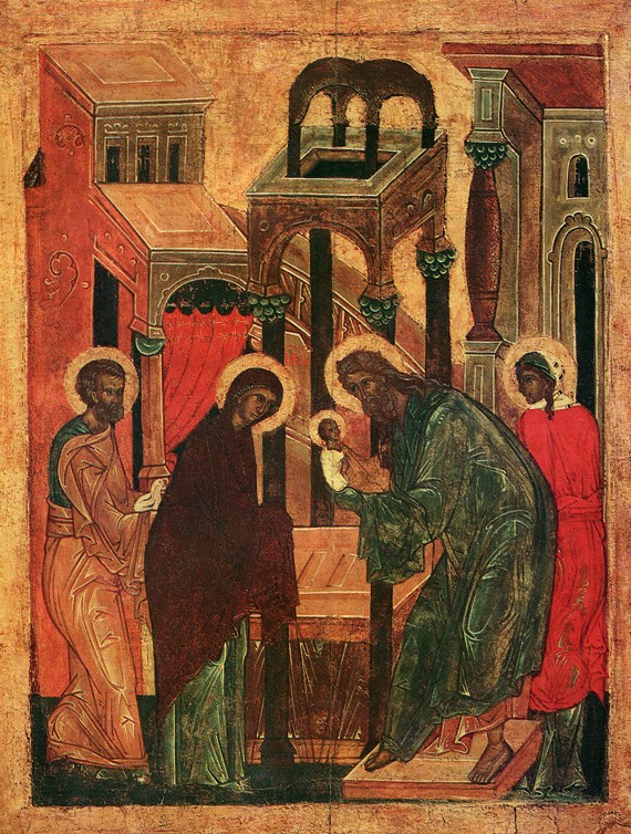Младенец, ветхий днями, вносится во храм,