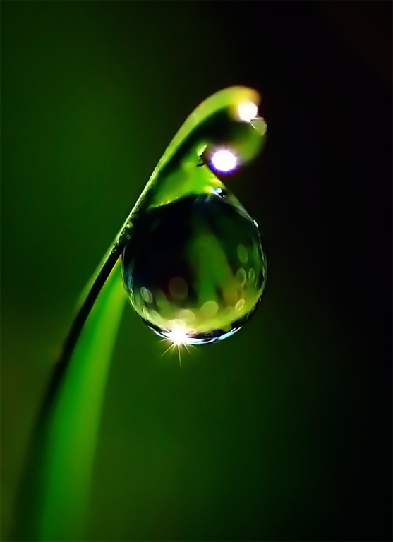 Все норовиться сдвинуть росинку, капелькой вниз.