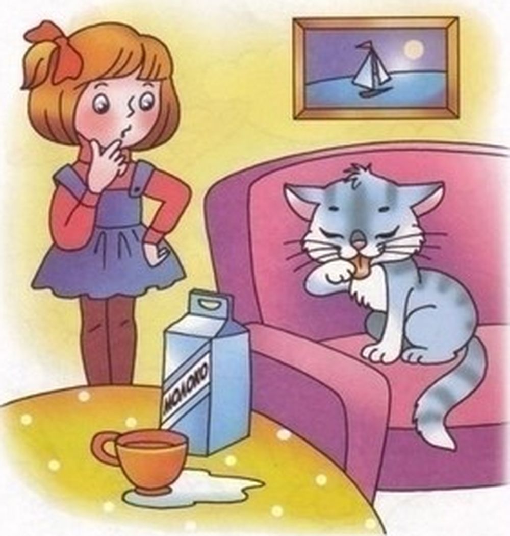 Видит – чашка с молоком.