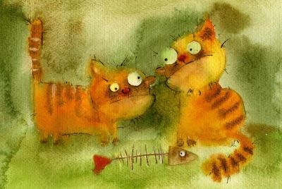 За стол коты подсели.