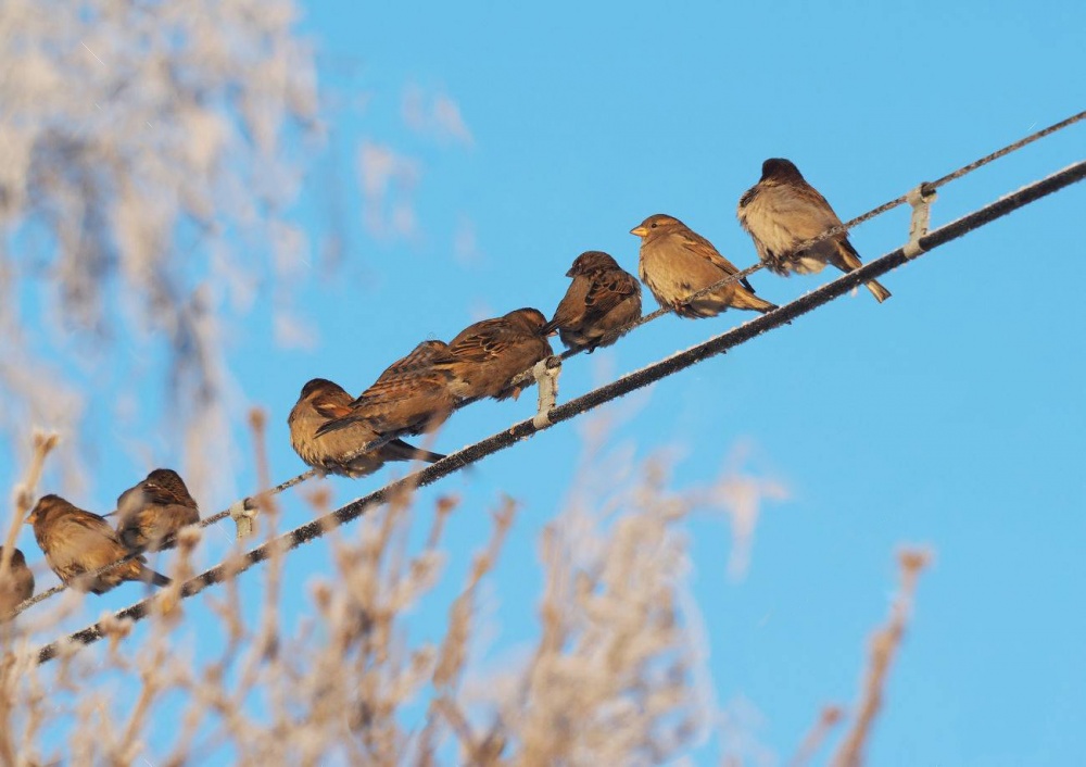 Воробьёв, синиц на проводах.