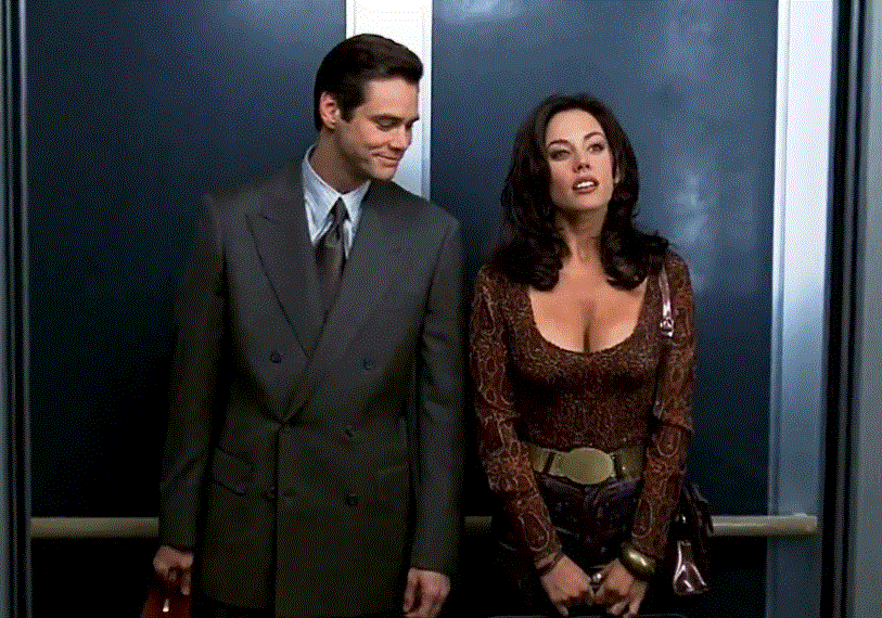 Грудастою дамой в подъезде.