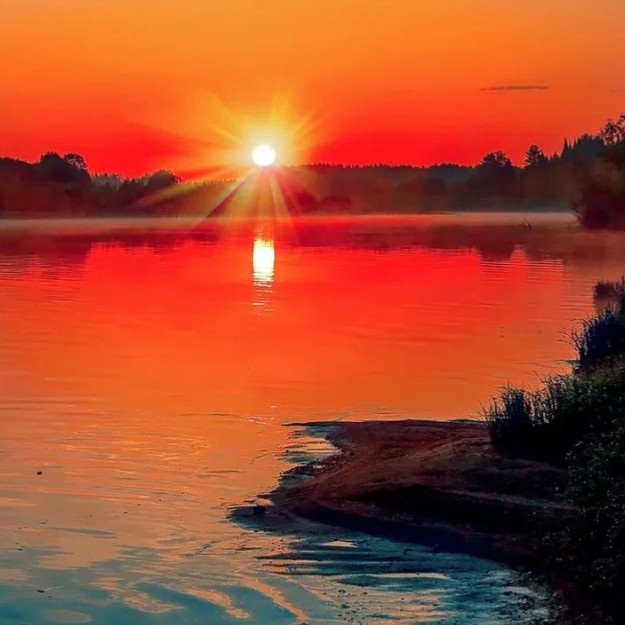 В зареве - лес и река,