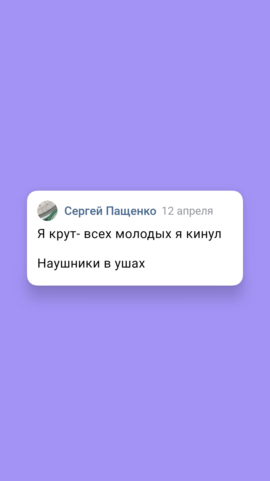Я крут- всех молодых я кинул Наушники в ушах Но ка