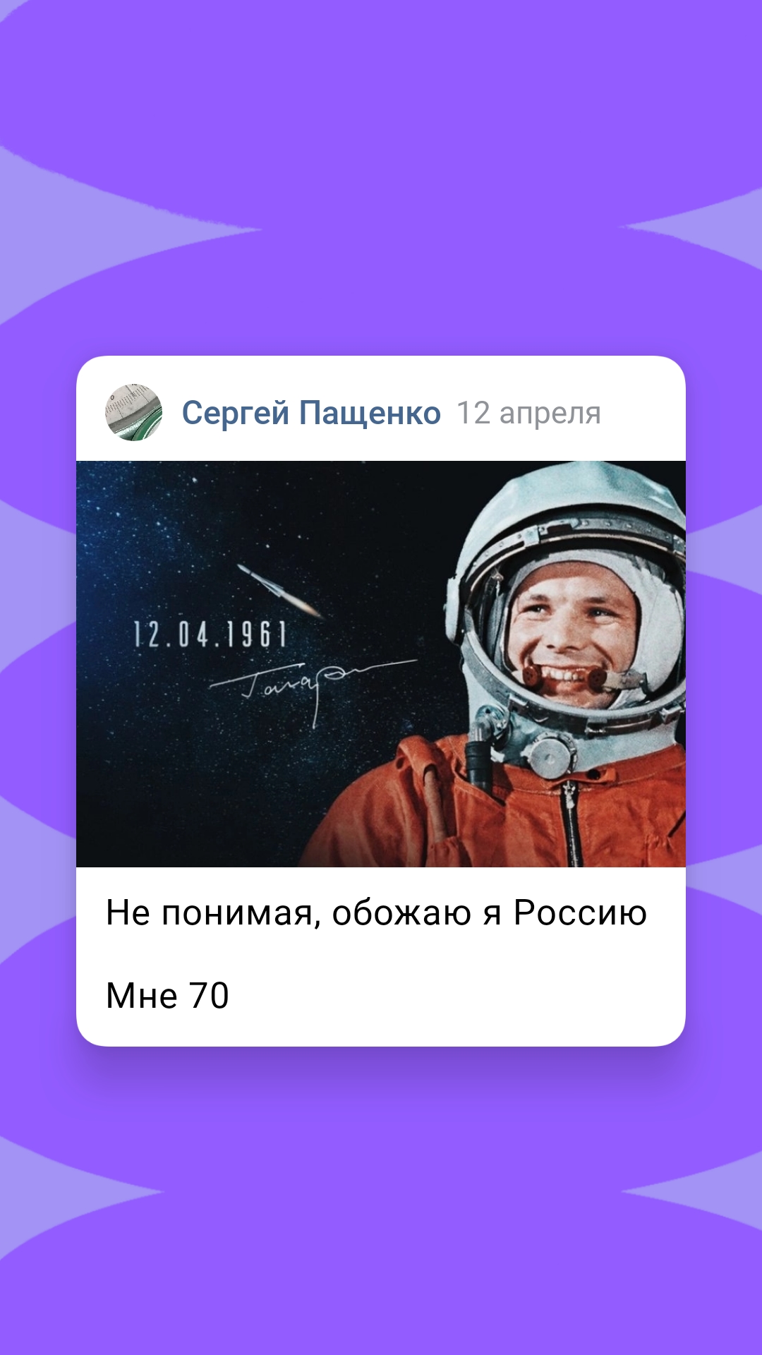 Не понимая, обожаю я Россию Мне 70 Она даёт