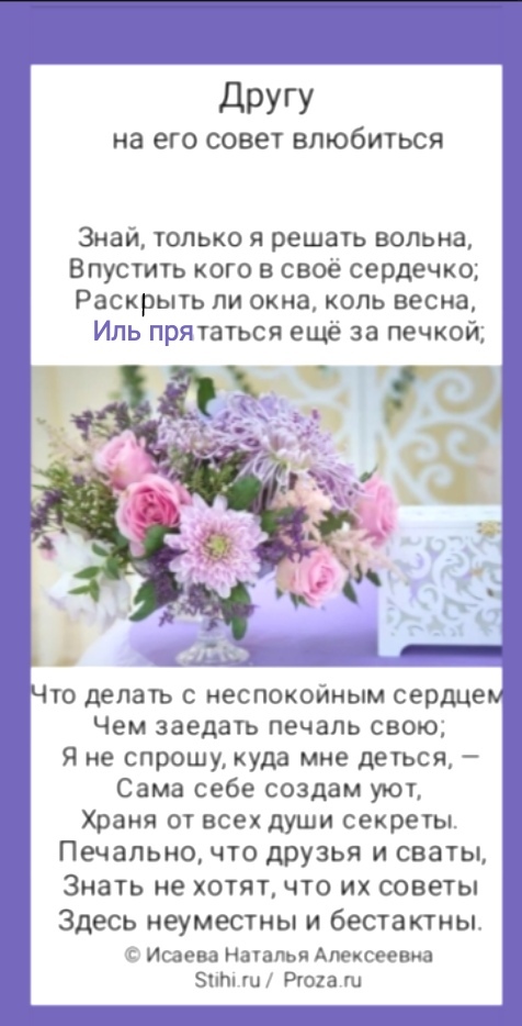 Другу на его совет влюбиться. Исаева Наталья