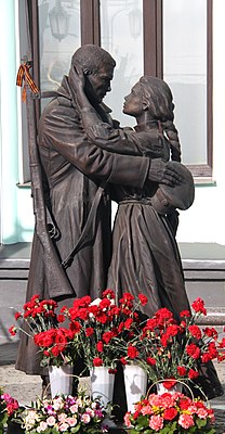 Памятник «Прощание славянки» установлен на территории Белорусского вокзала в Москве. Авторы памятника — скульпторы Сергей Щербаков и Вячеслав Малокостов, архитектор Василий Данилов; его сооружение велось под руководством народного художника России Салавата Щербакова. Скульптурная композиция выполнена из бронзы, создана по мотивам сцены проводов добровольцев на войну фильма Михаила Калатозова «Летят журавли».