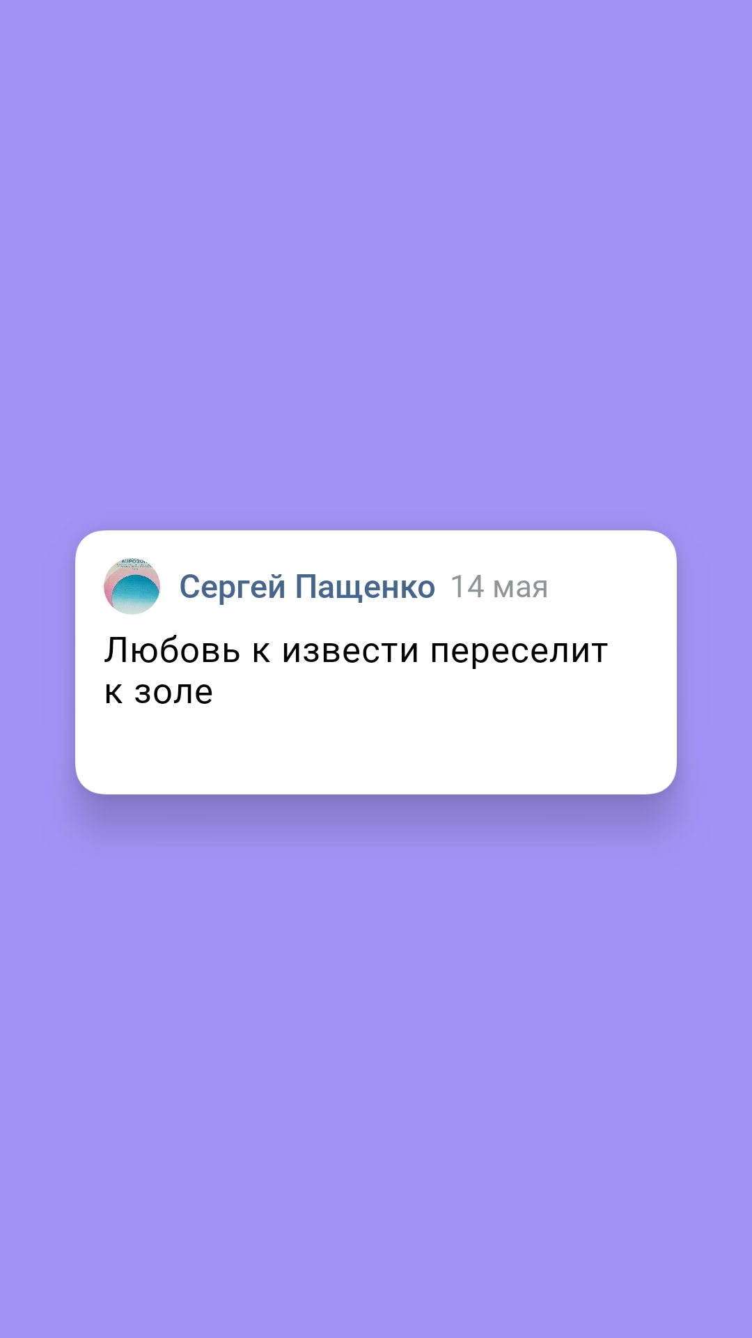 Любовь к извести переселит к золе Любовь Скоро взд