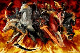 *Четыре всадника Апокалипсиса — персонажи из шестой главы Откровения Иоанна Богослова. До сих пор нет единого мнения, что именно олицетворяет каждый из всадников, однако их часто именуют Чума (едет на белом коне — ещё известен как Завоеватель, Война (на рыжем коне — ещё известен как Раздор. Голод (на вороном коне с мерой для пшеницы) и Смерть (на бледном коне). Бог призывает их и наделяет силой сеять хаос и разрушение в мире
