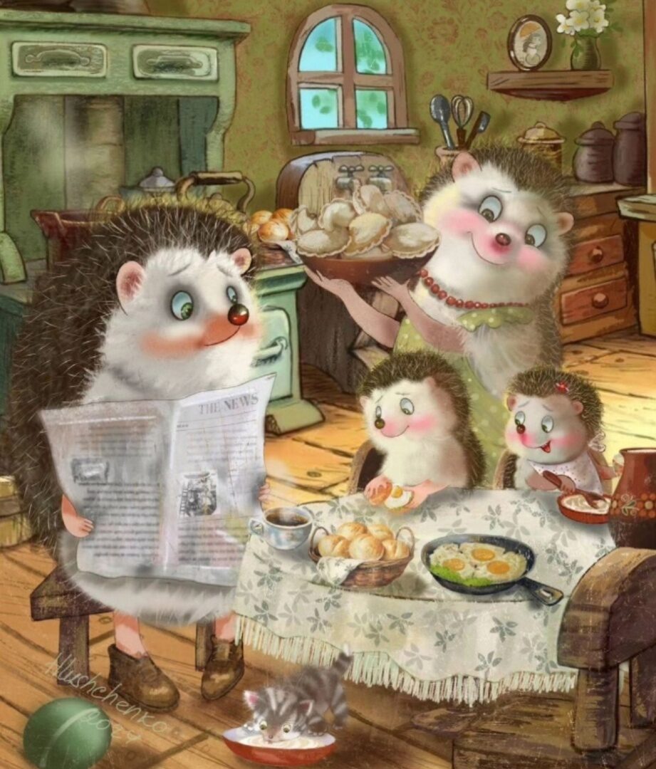а за нею,три ежонка,