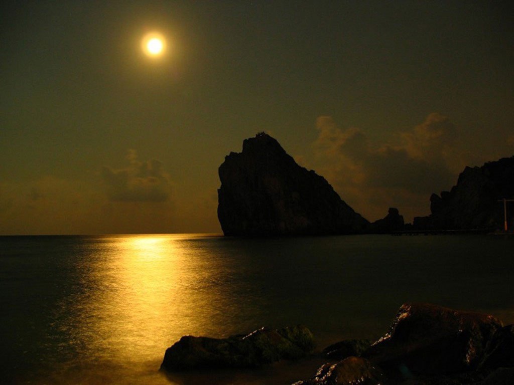 С луны на волны, скалы, море,