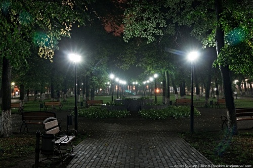 На аллее ночной тишина, даже ветер затих.