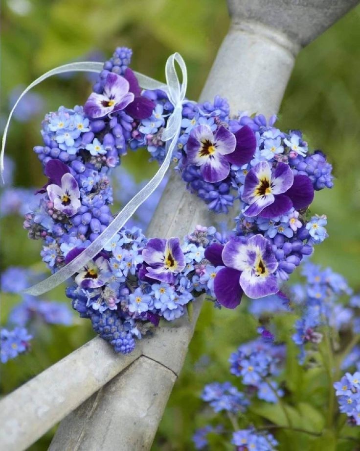Венок мускари, незабудок и виолы