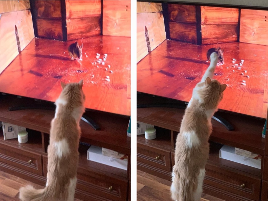 -Мыши всё-таки отстой, китикет люблю жевать. Котик с виду непростой, не желает мышек гнать из чулана и сарая, он боится Тишки лая.
