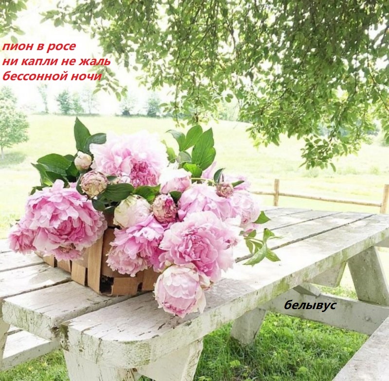 пион в росе