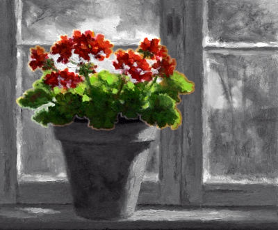 Герань, оставленная еще вчера мной на окне,