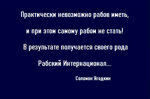 Тем более, что рабовладелец - тоже, раб, но раб уже добровольный, а значит, и пожизненный...