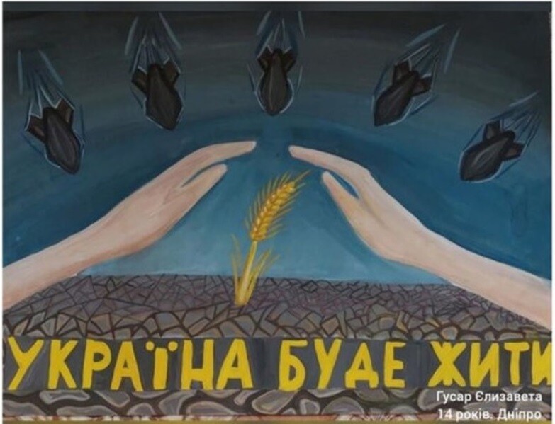 Автор рисунка - девочка 14-ти лет Гусар Елизавета из украинского г. Днепр (см. надпись в правом нижнем углу рисунка).