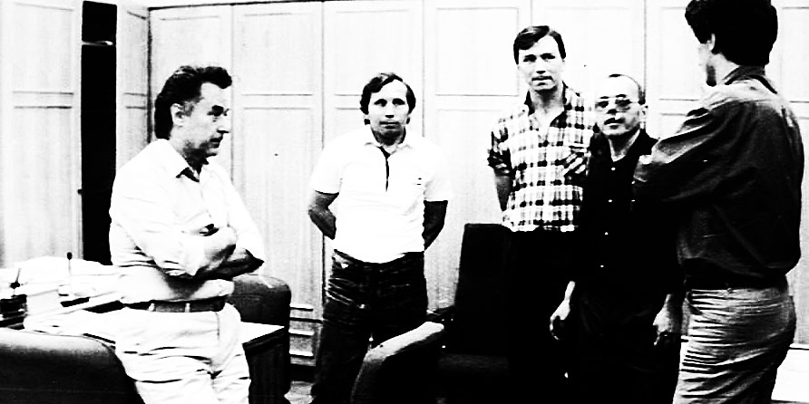 За 5 лет до перестройки Карасев написал стихотворение, в котором были пророческие фразы: «Какую сторону я приму, какую линию я приму, какую… сердце мне подскажет». Он думал, что пишет про белых и красных, а оказалось, о событиях 1991 года. В КГБ потом пришлось объясняться. 19 августа был путч, а 21;го у «банщиков» выставка в московском ЦДХ. Они переживали, что закроют. Но повезло. Все прошло хорошо. Вернувшись домой, одной из своих работ Карасев дал название «В Москве все спокойно». Там были изображены чугунные ворота и старое купеческое здание. Позже работы «банщиков» участвовали в групповой выставке во французском городе Реймс…