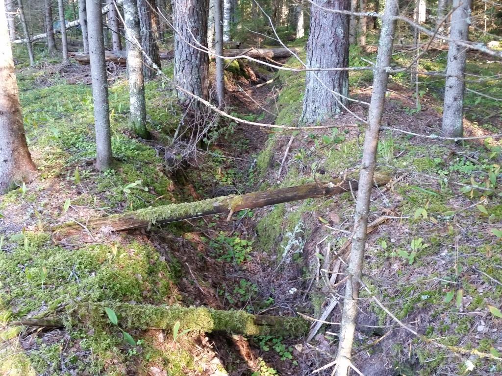 Блиндажи и окопы в лесах,