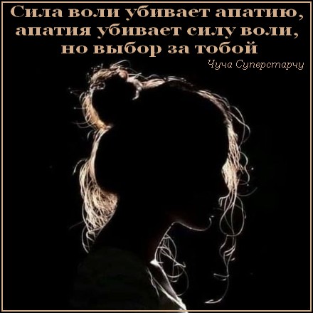 Сила воли убивает апатию, апатия убивает силу воли, но выбор за тобой.