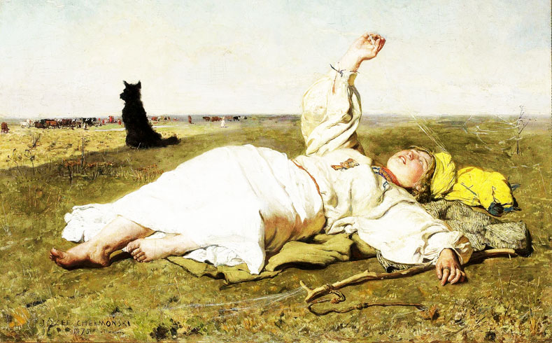 Она лежала, он стерёг.