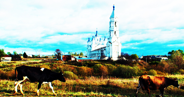 Задняя часть с крестом, а спереди башня без креста.