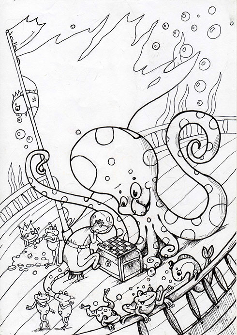 С морскими чудовищами."