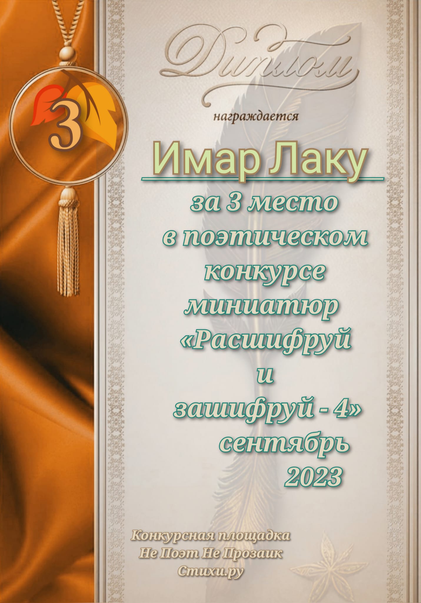 Диплом за 3 место в анонимном конкурсе миниатюр