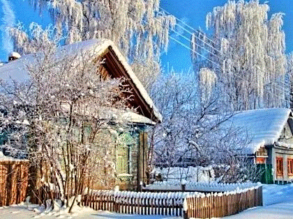 В шапках снега каждый дом.