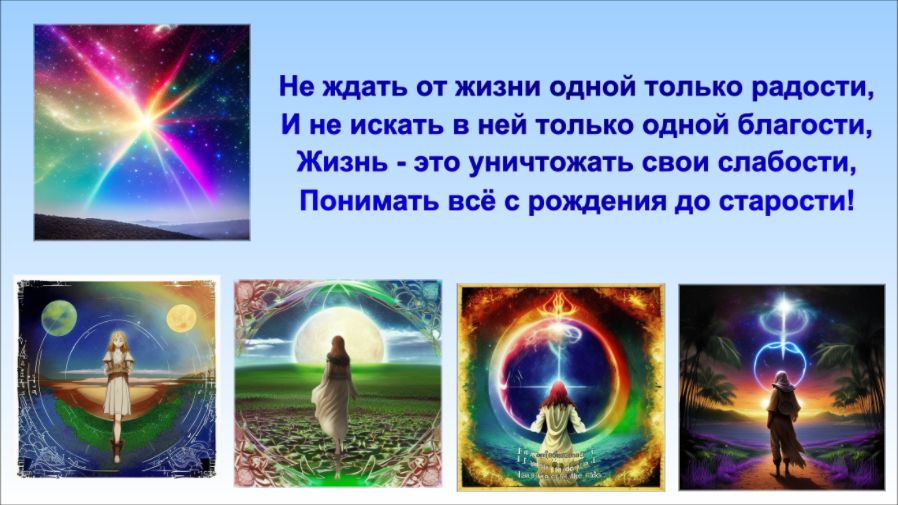 Умение понимать и принимать то, что происходит в жизни, от момента рождения до старости, также играет важную роль. Понимание помогает сохранять эмоциональное равновесие и находить позитивные решения в трудных ситуациях. При этом, нам важно помнить, что каждый опыт, даже трудный и неприятный, может быть для нас уроком и позволить расти и развиваться.