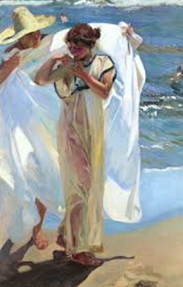 на фото - картина испанского художника Хоакина Соролья-и-Бастида "После купания" 1909 г.