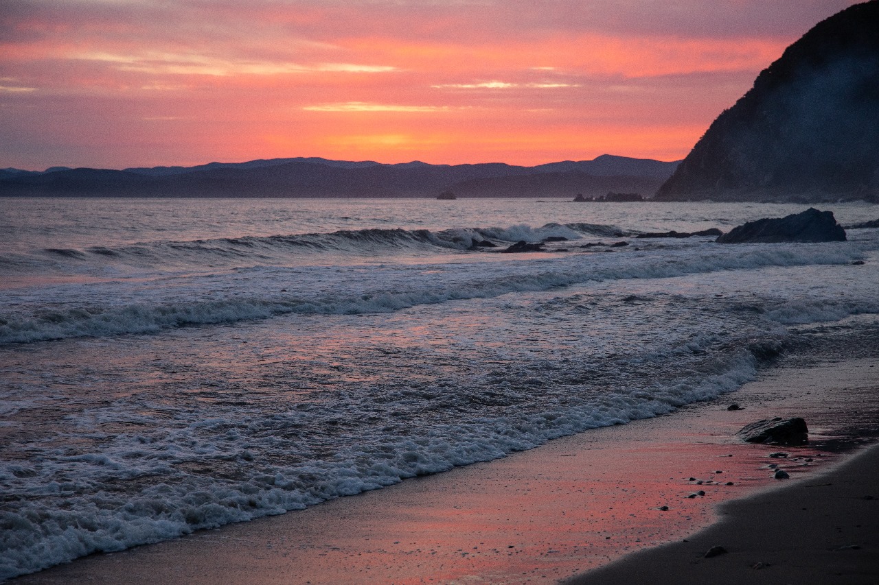 Розовеет за ним закат.