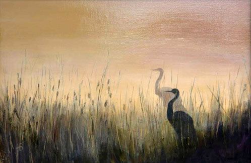 Рассвет встречают цапли в камышах.