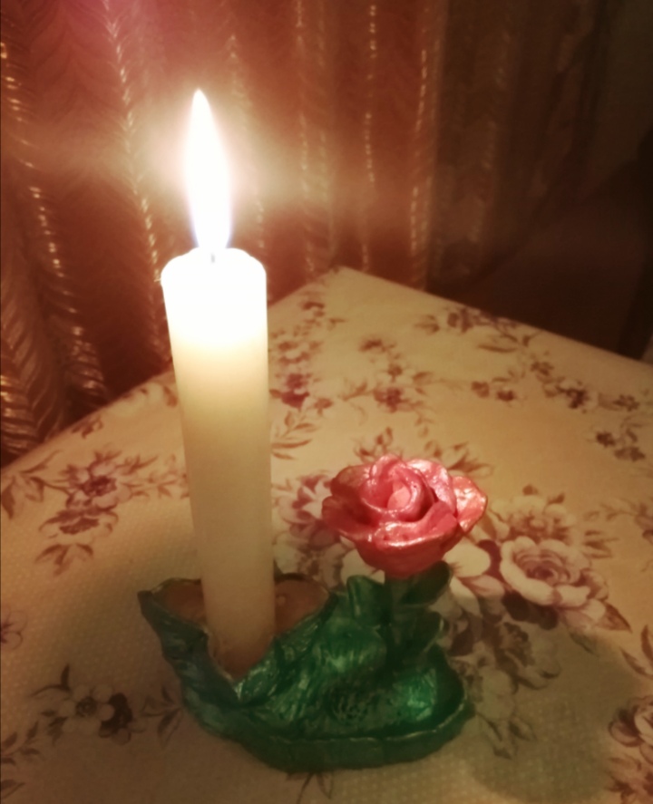 Сначала идея пришла сделать розу, в нете нашла информацию, как создать бутон. Потом меня осенило, что это будет просто и использовать вещь нельзя такую. И вот решила сделать подсвечник, который приносил бы ощущение радости, когда в нём горела бы свеча.