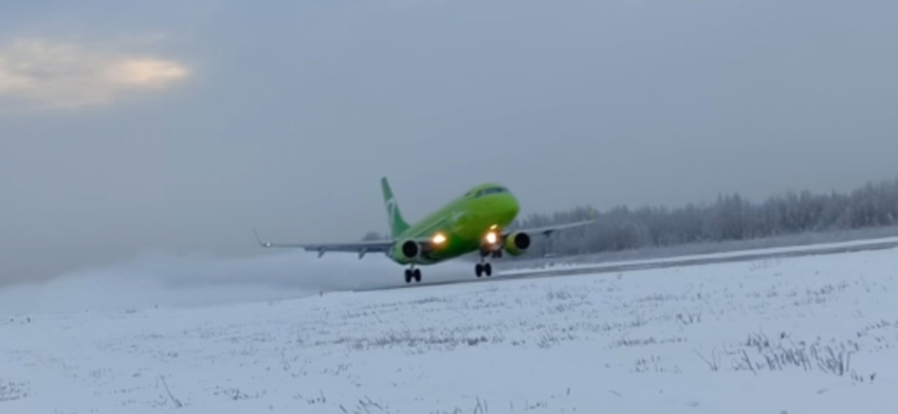 На посадку к нам в заснеженный, зелёненький заходит