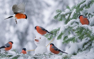 Их оседлали, будто, снегири.