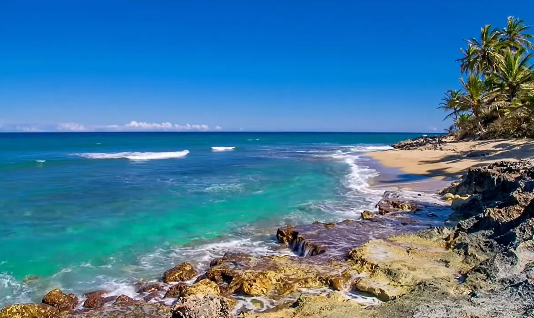 Сверкая изумрудной бирюзой.