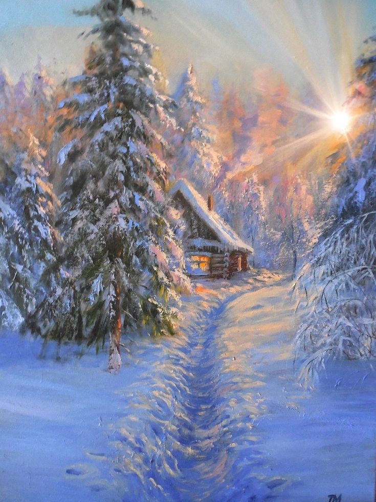 Кладёт полотна белые и на деревья пух,
