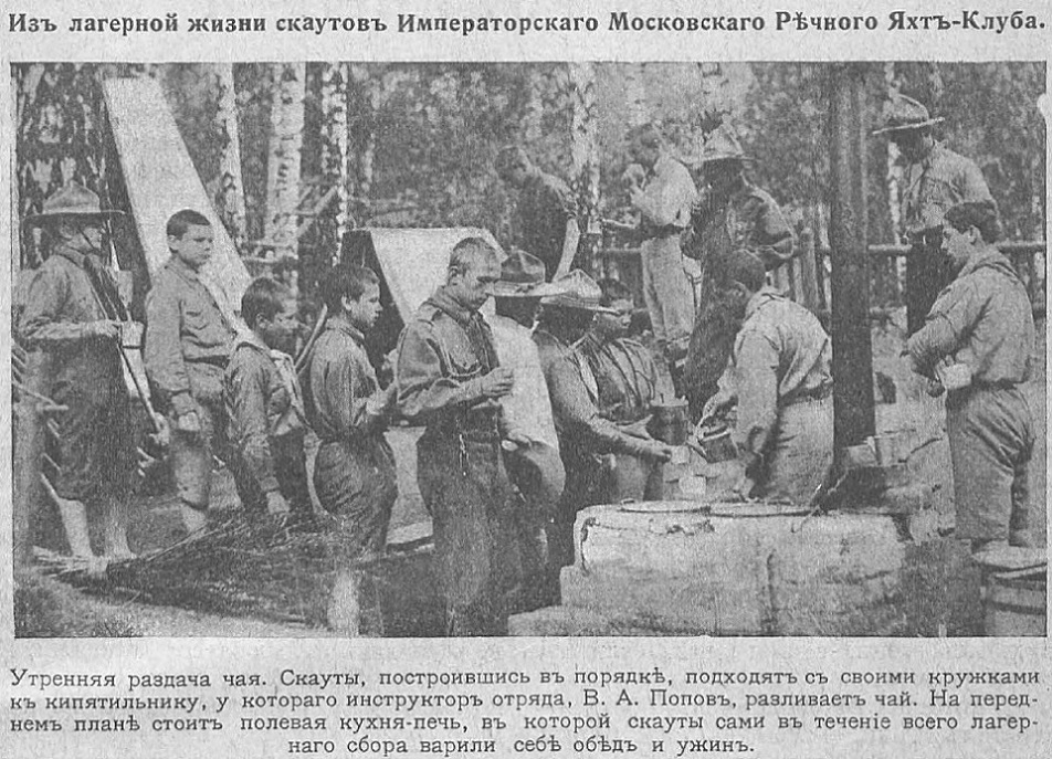 Именно Пауэл основал в 1908 году организацию бой-скаутов. В качестве испытания для разведчика второго разряда и получения право носить скаутский значок, скаутский устав предусматривал получение одобрения старшины, в том числе, по умению развести костер, употребляя при этом не более двух спичек и приготовить на нем «четверть фунта муки и две картошки, не пользуясь посудой». Девиз при скаутском значке гласил: «Будь готов!» и обозначал, что разведчик должен быть всегда готовым исполнить свой долг, помогая ближним, не страшась опасности. Обязательным атрибутом формы скаута стал цветной шейный платок, завязанный свободным узлом.