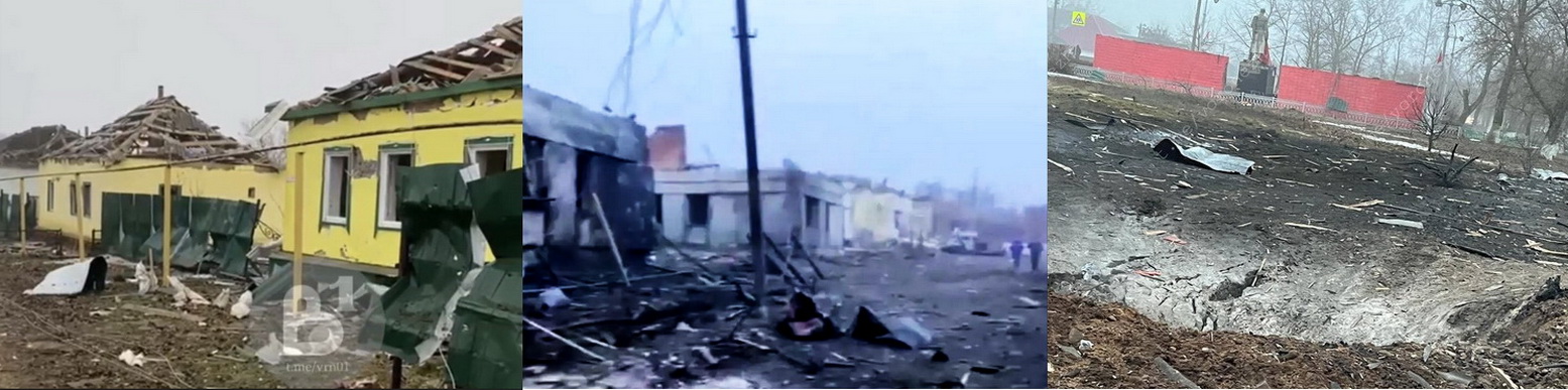 2 января губернатор Воронежской области Александр Гусев сообщил, что «зафиксирован аварийный сход нашего боеприпаса» в Острогожском районе. По его словам, никто не пострадал, но есть разрушения в семи домовладениях. Там могут быть повреждены несущие конструкции, остекление и кровля. Некоторых жителей пострадавшего поселка Петропавловка перевозят в пункты временного размещения.