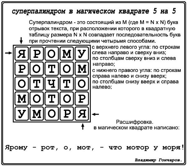 Суперпалиндром 109 в магическом квадрате 5 на 5