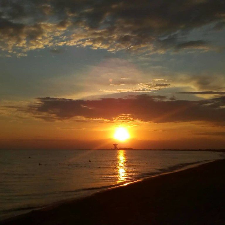 Огромные просторы приморских степей, где ветер гуляет вольно и весело. Как одинокие путники, встречающиеся на пути, выносливые деревья, причудливо изогнувшиеся под силой ветра. Некоторые деревца ещё зелёные, а есть и абсолютно жёлтые, как- будто развесившие листочки-монетки. Как инопланетные исполины громадные тарелки Центра дальней космической связи. Их много. И они как-будто вырастают из-за горизонта, поражая своей необычностью и масштабностью. Проехав абсолютно небольшое количество км от Евпатории, мы оказались в Штормовом. Почему такое название? Не знаю. Но береговая полоса впечатлила. Огромная с почти белым, светло-бежевым мелким песком. Море нереальное, мягкое и в тоже время сильное, оно свободно и тихо дышало, при выдохе осторожно и бережно выбрасывая волны на песок. И так было везде, куда мы направляли свой взгляд. И мы были в очередной раз поражены такому разнообразию природы и ее проявлений на таком небольшом по меркам матушки- России полуострове под названием Крым.